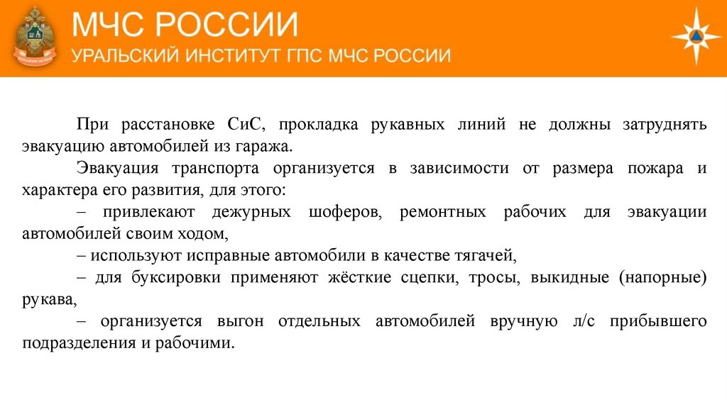 При расстановке СиС, прокладка рукавных линий не должны затруднятьэвакуацию автомобилей из гаража.
