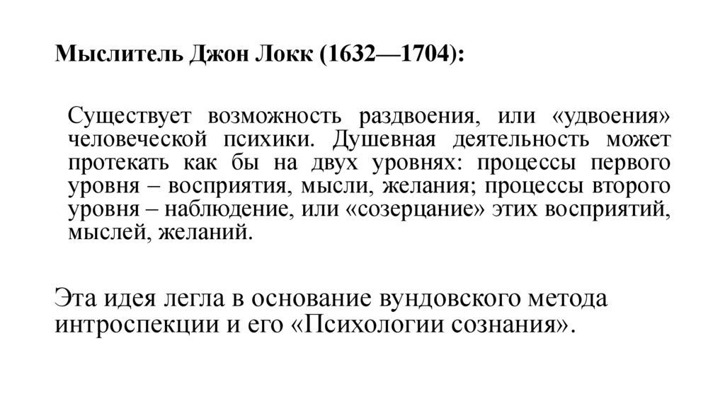 Мыслитель Джон Локк (1632—1704):Существует возможность раздвоения, или «удвоения»
