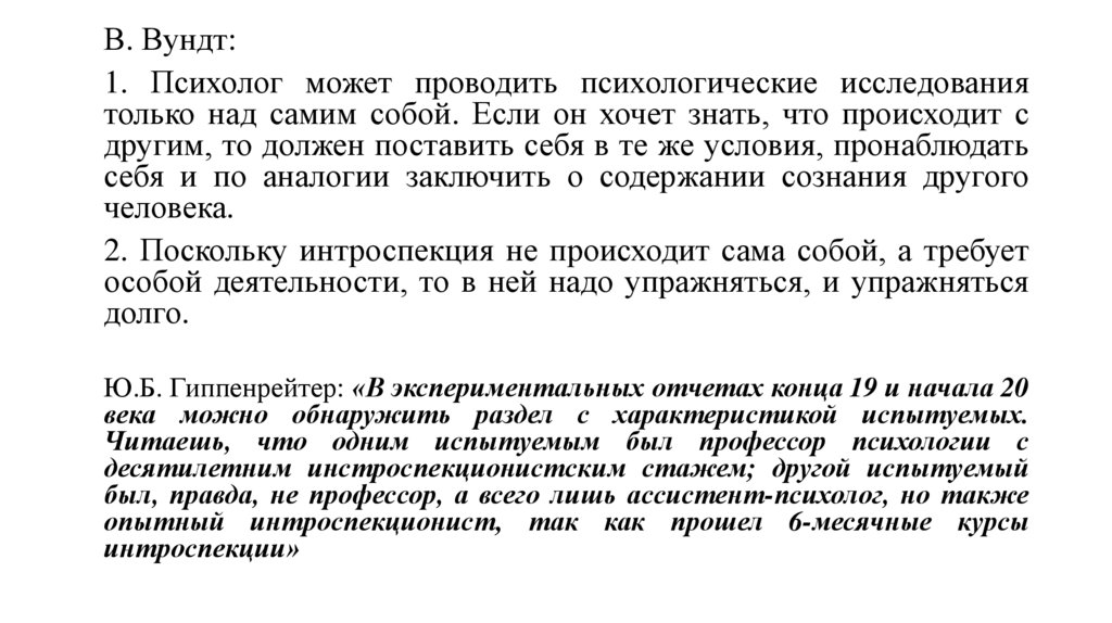 Ю.Б. Гиппенрейтер: «В экспериментальных отчетах конца 19 и начала 20