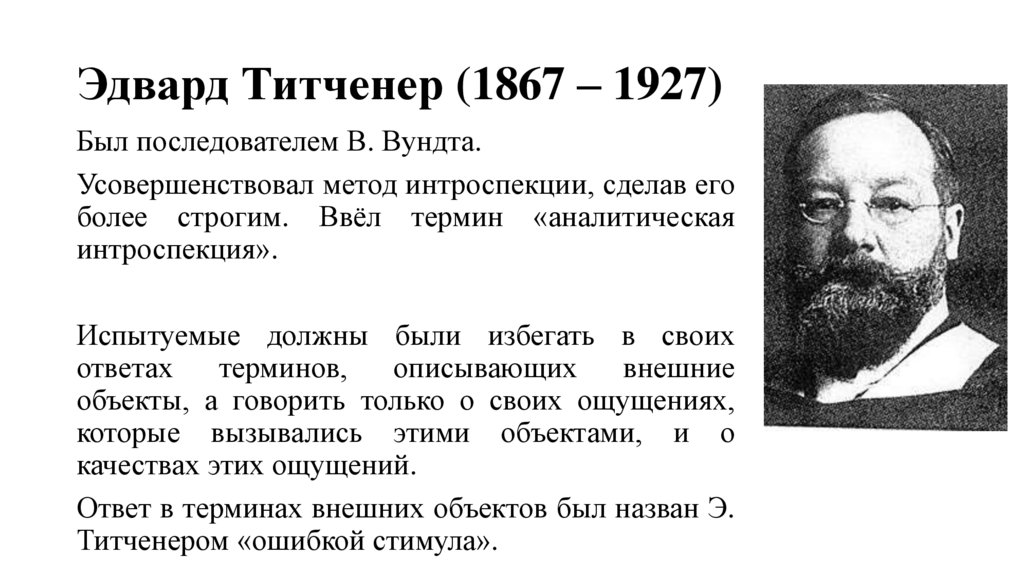 Эдвард Титченер (1867 – 1927)Был последователем В. Вундта.