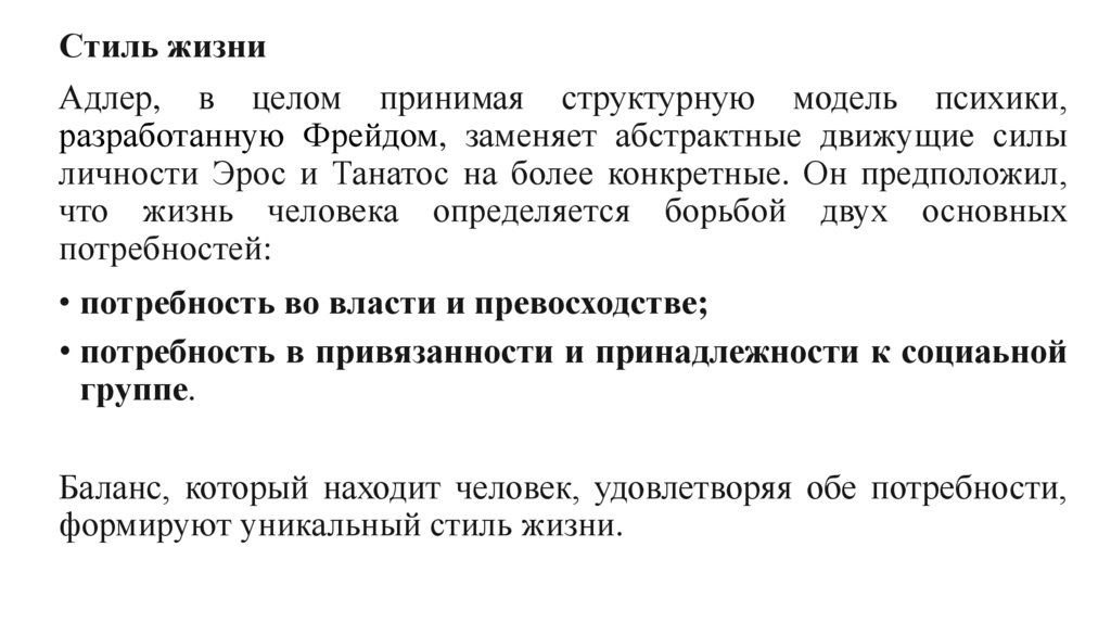 Стиль жизниАдлер, в целом принимая структурную модель психики,