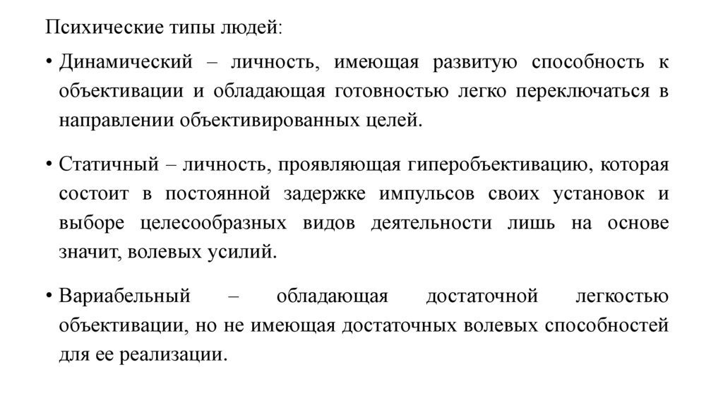 Психические типы людей:• Динамический – личность, имеющая развитую способность к