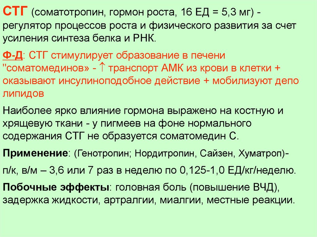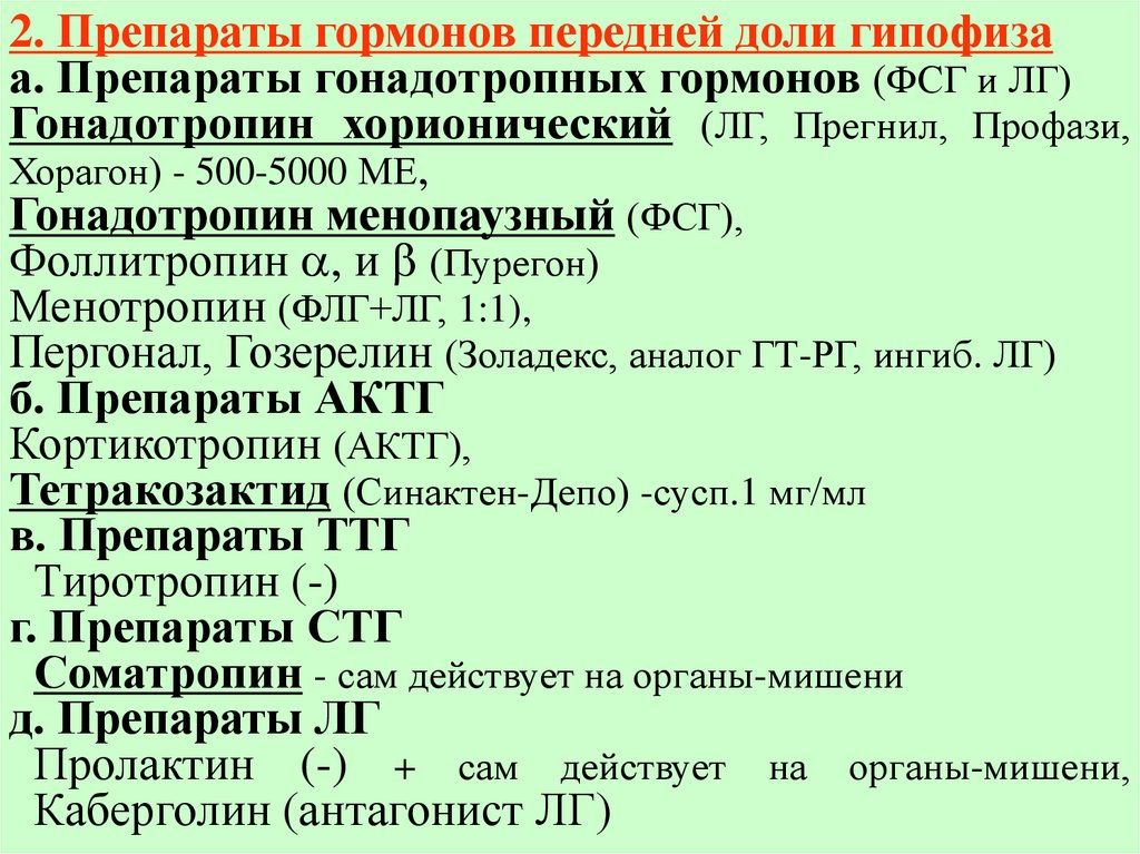 гормонов передней долей гипофиза.
