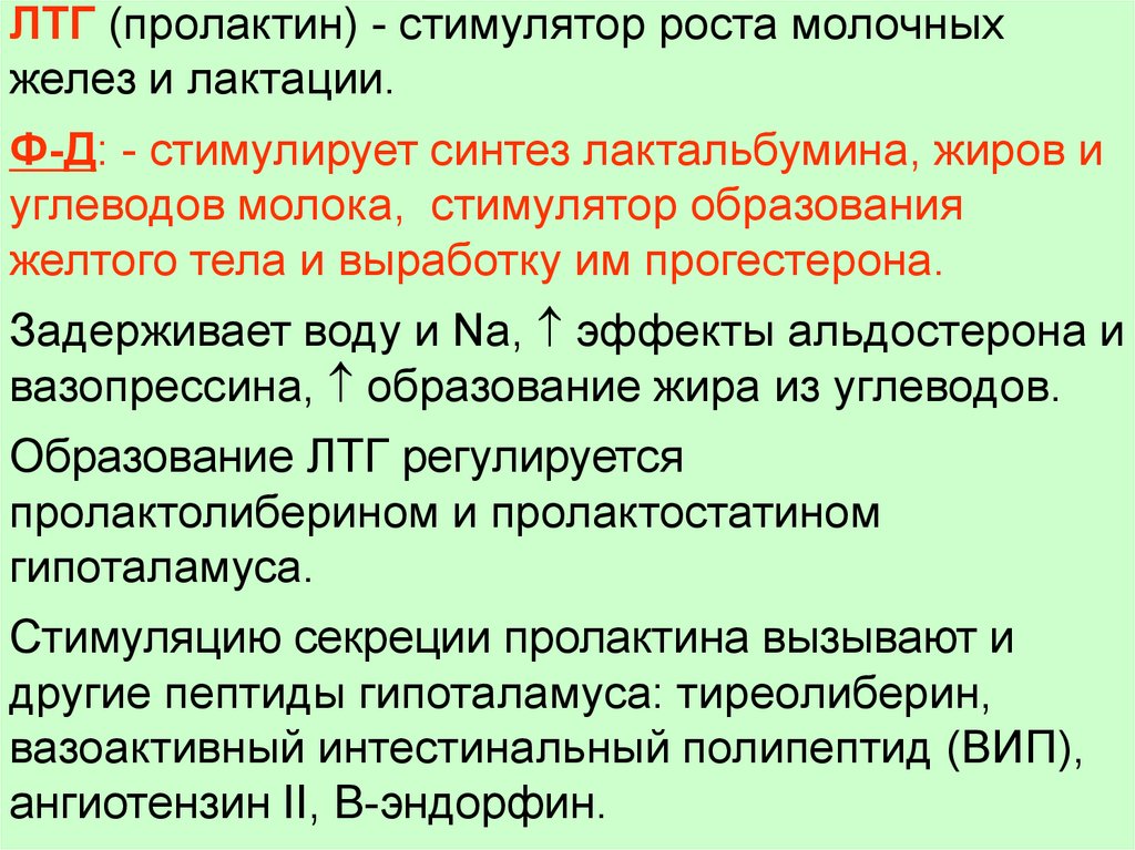 (стимулятор секреции пролактина); эпифизгормон (фактор «Милку»); эпиталамин суммарный пептидный комплекс и др.