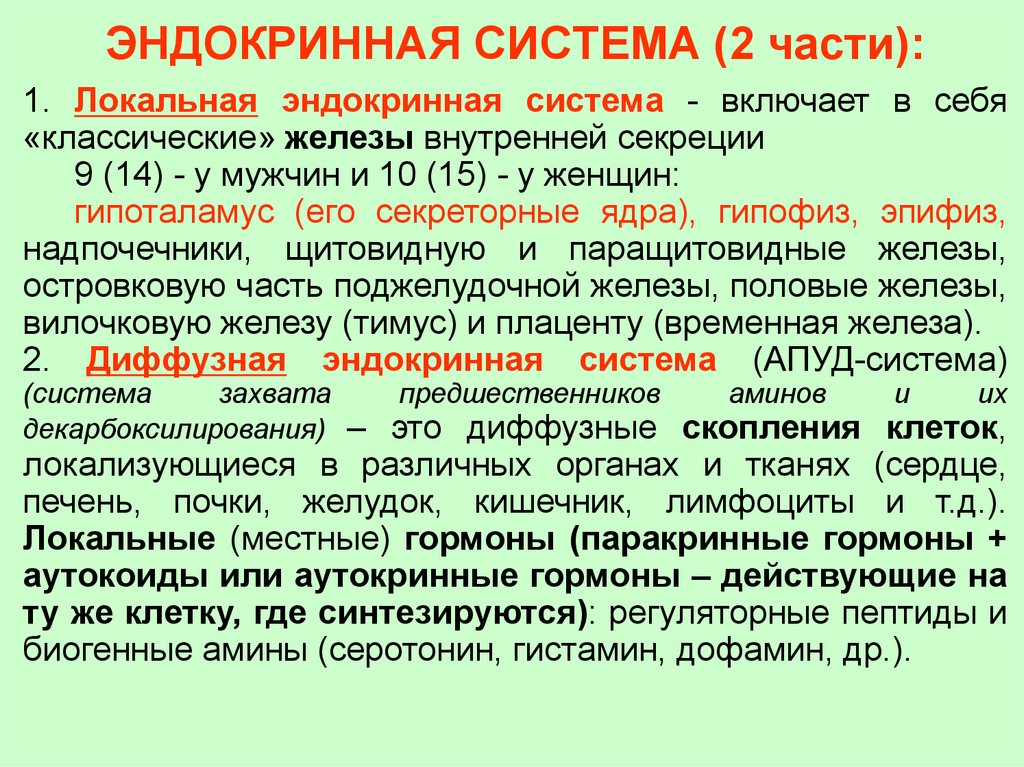 ЭНДОКРИННАЯ СИСТЕМА (2 части):1. Локальная эндокринная система - включает в себя