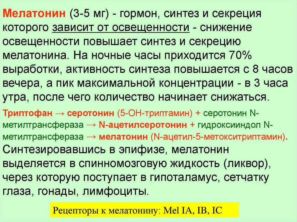 мелатонина. На ночные часы приходится 70%