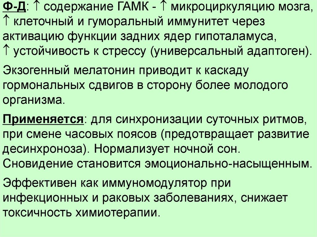 Ф-Д: содержание ГАМК - микроциркуляцию мозга,клеточный и гуморальный иммунитет через