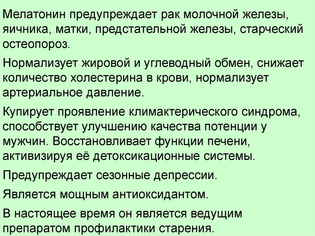 Мелатонин предупреждает рак молочной железы,яичника, матки, предстательной железы, старческий