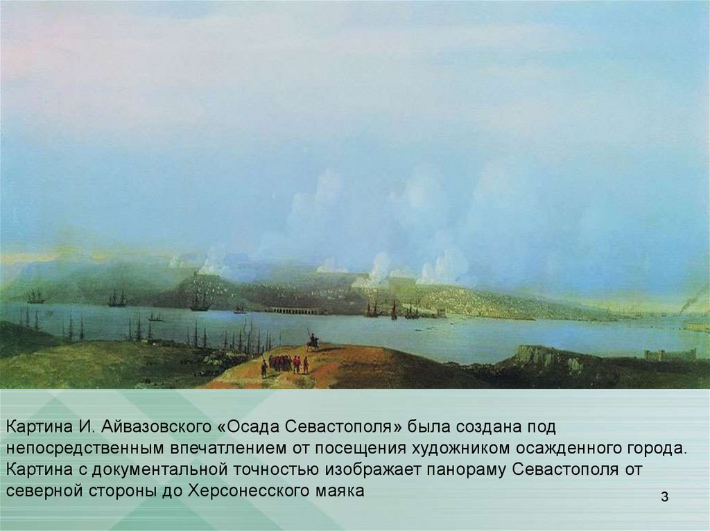 Картина И. Айвазовского «Осада Севастополя» была создана поднепосредственным впечатлением от посещения художником осажденного города.