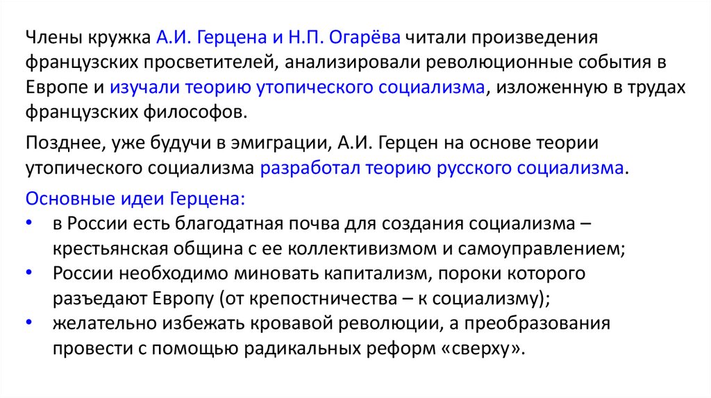 Европе и изучали теорию утопического социализма, изложенную в трудах
