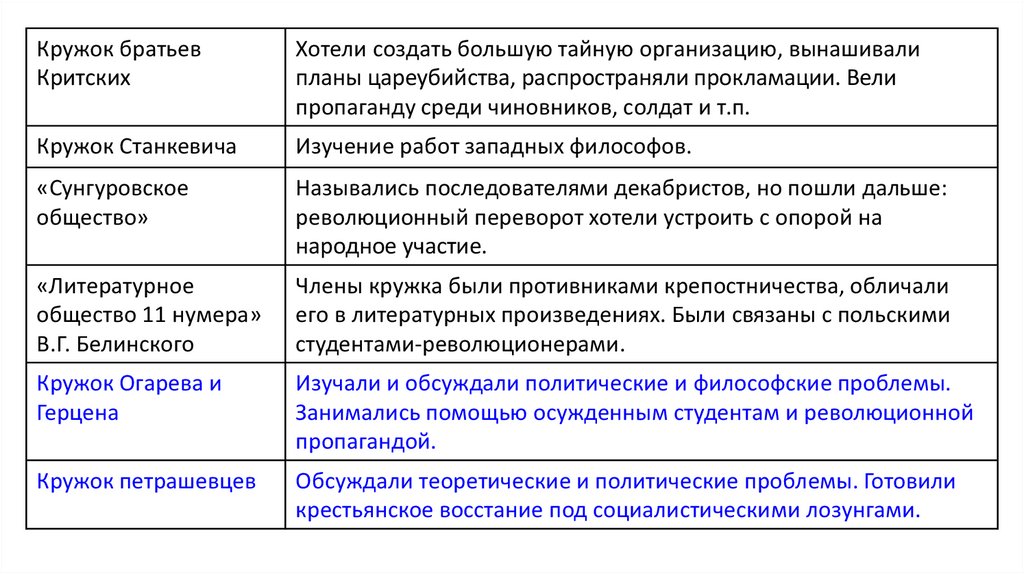 5. Чем радикальные кружки 1830-1840-х гг. отличались от тайных