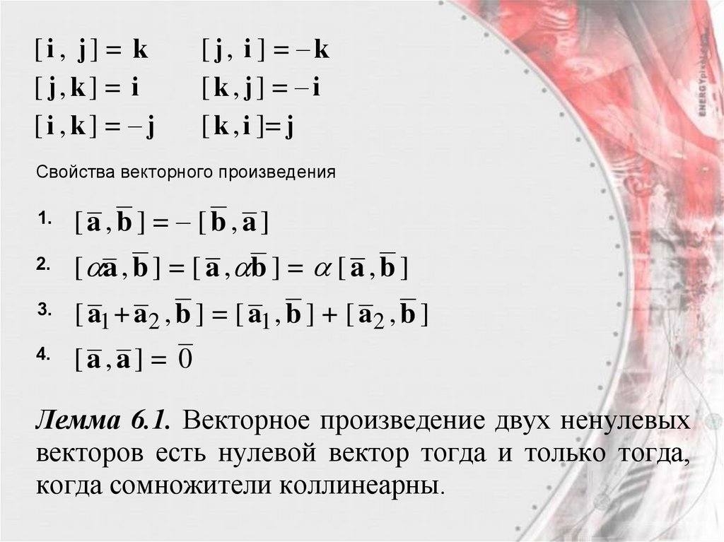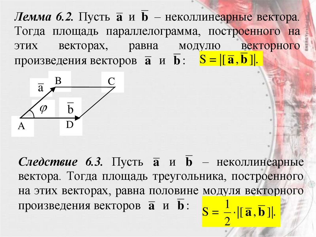 Лемма 6.2. Пусть a и b – неколлинеарные вектора.Тогда площадь параллелограмма, построенного на