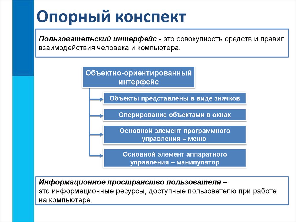 Опорный конспектПользовательский интерфейс - это совокупность средств и правил