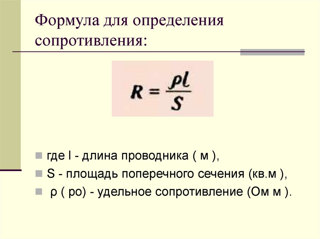Формула для определениясопротивления: