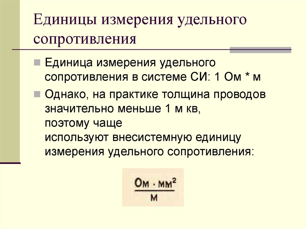 Единицы измерения удельногосопротивления