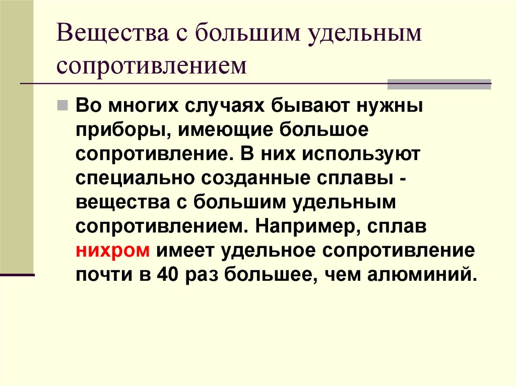 Вещества с большим удельнымсопротивлением
