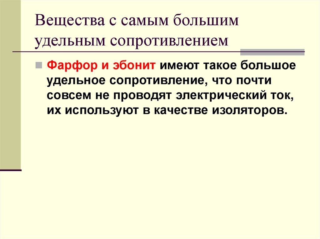 Вещества с самым большимудельным сопротивлением