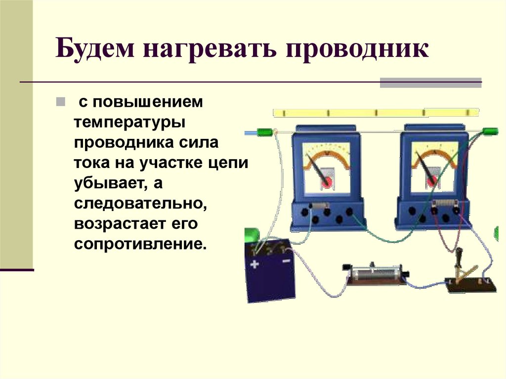 Будем нагревать проводникс повышением