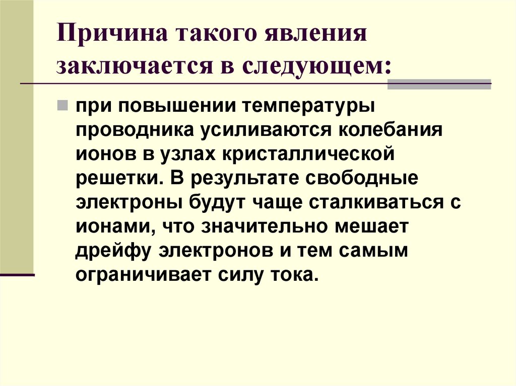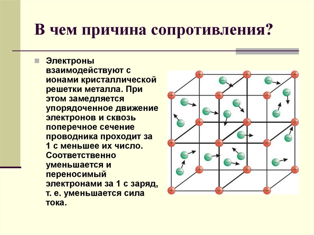 В чем причина сопротивления?Электроны