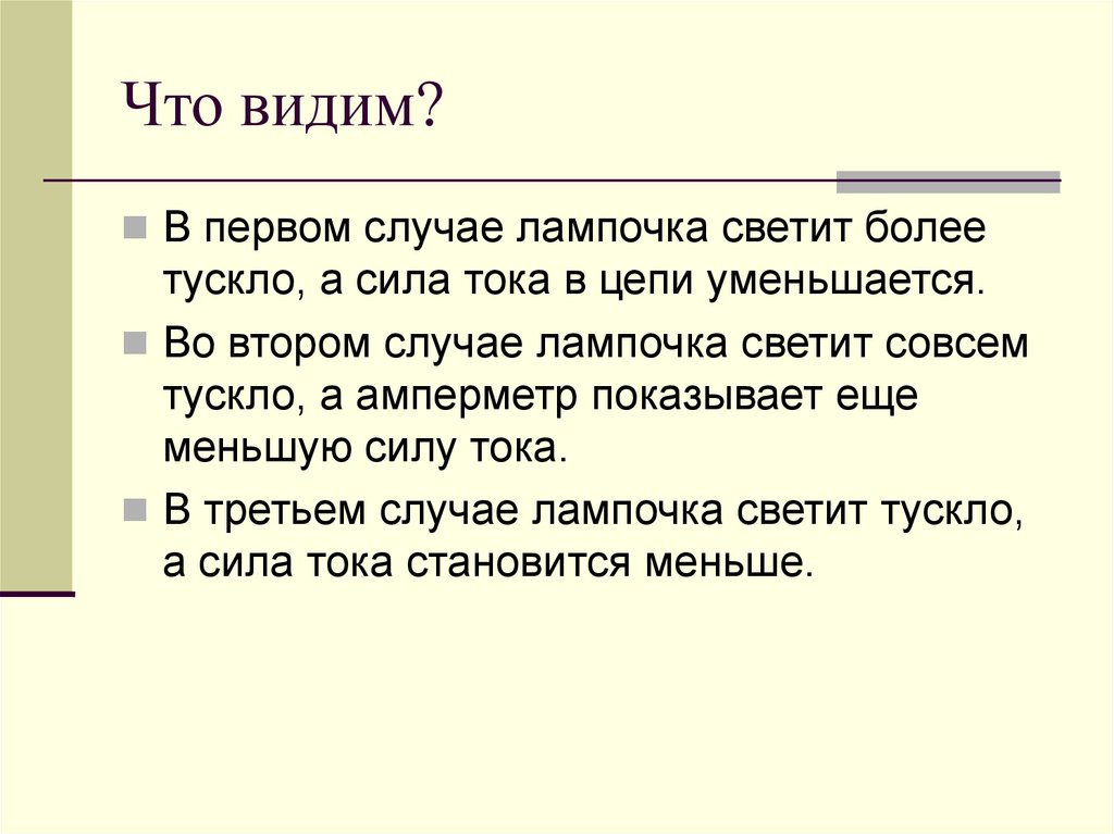 Что видим?В первом случае лампочка светит более