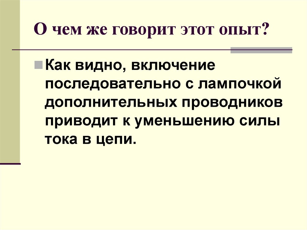 О чем же говорит этот опыт?Как видно, включение