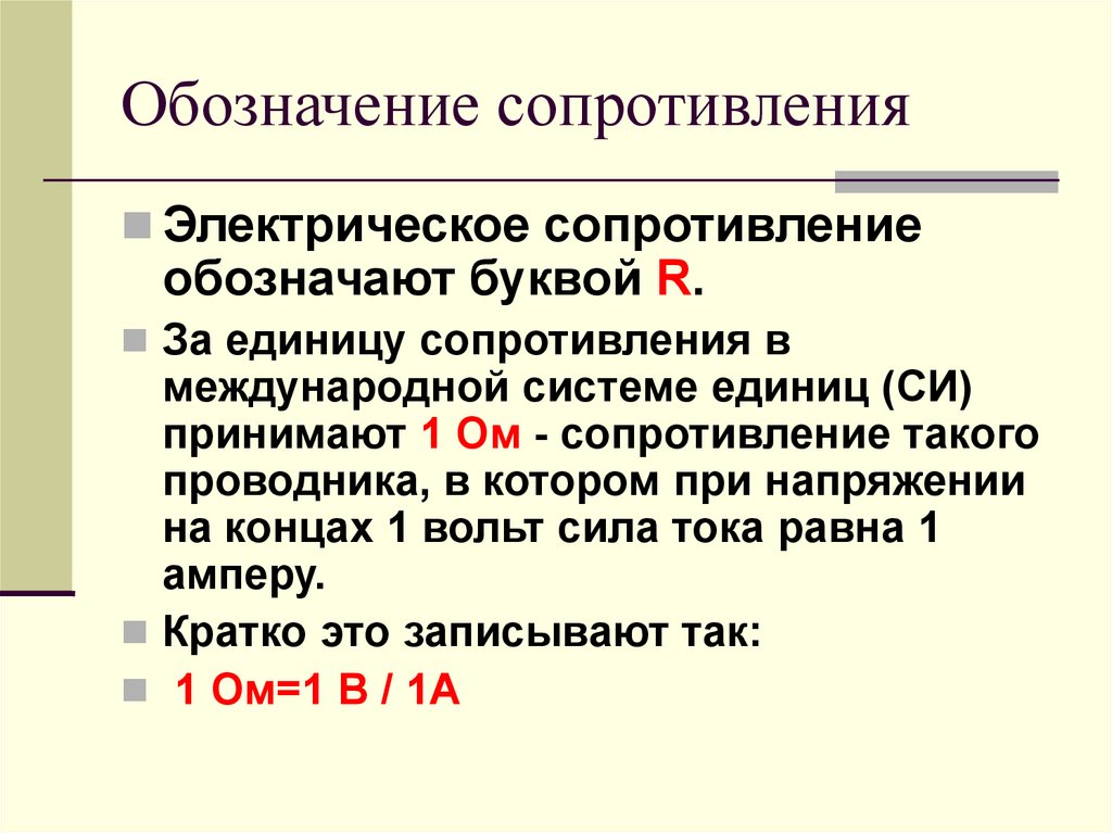 Обозначение сопротивленияЭлектрическое сопротивление