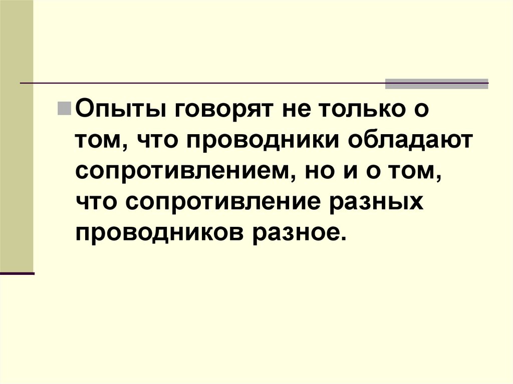 Опыты говорят не только отом, что проводники обладают