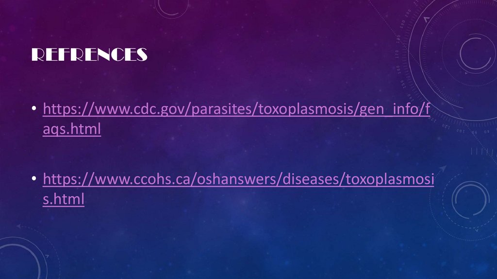 REFRENCES• https://www.cdc.gov/parasites/toxoplasmosis/gen_info/f