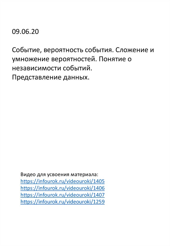 09.06.20Событие, вероятность события. Сложение и