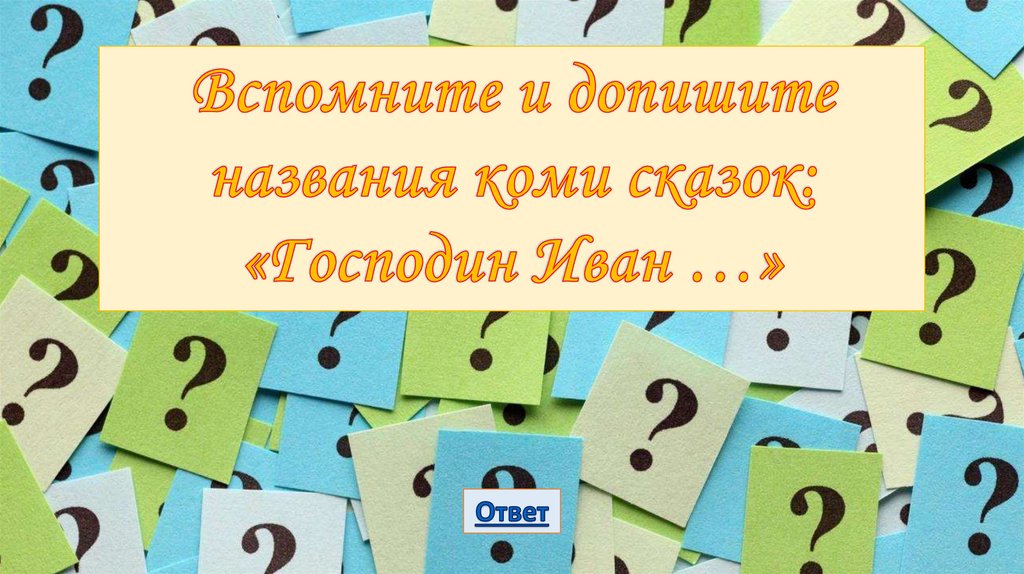 Конкурс проектов на тему «Сказки коми народа». Викторина