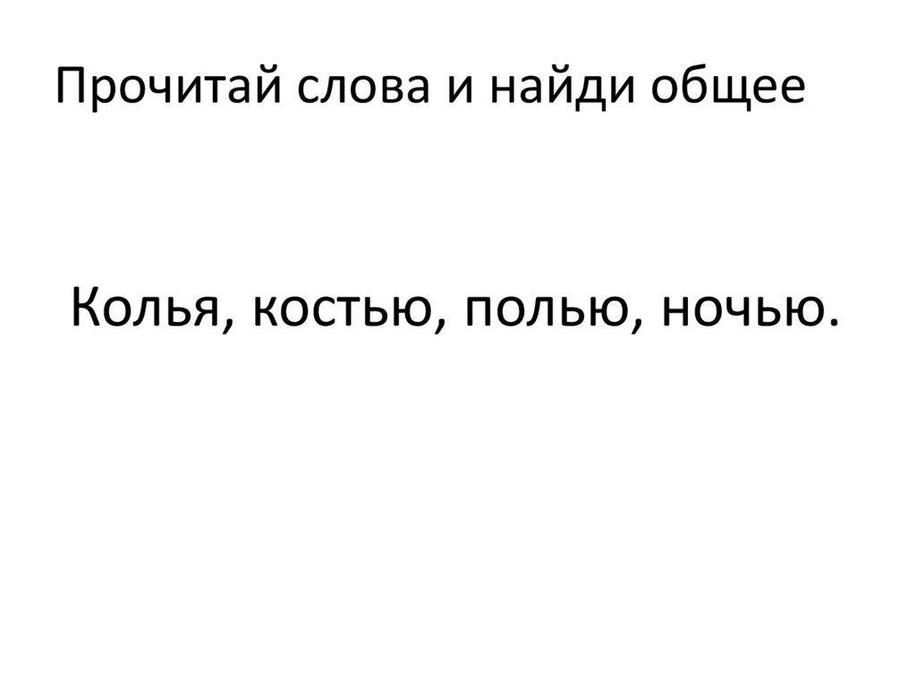 Прочитай слова и найди общееКолья, костью, полью, ночью.