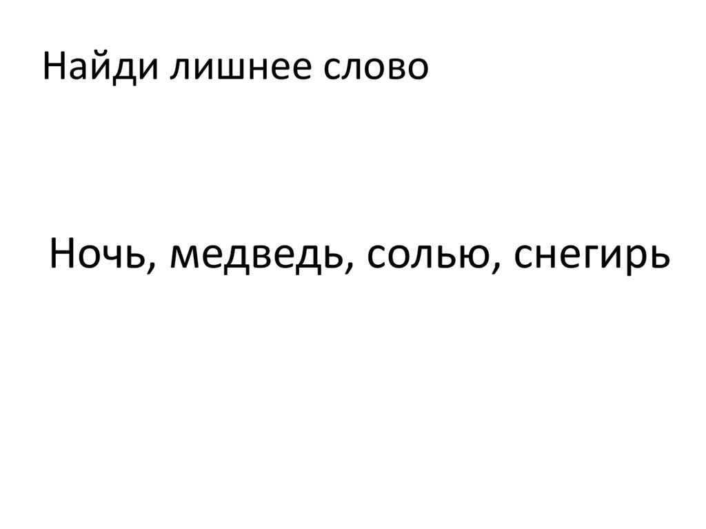 Найди лишнее словоНочь, медведь, солью, снегирь