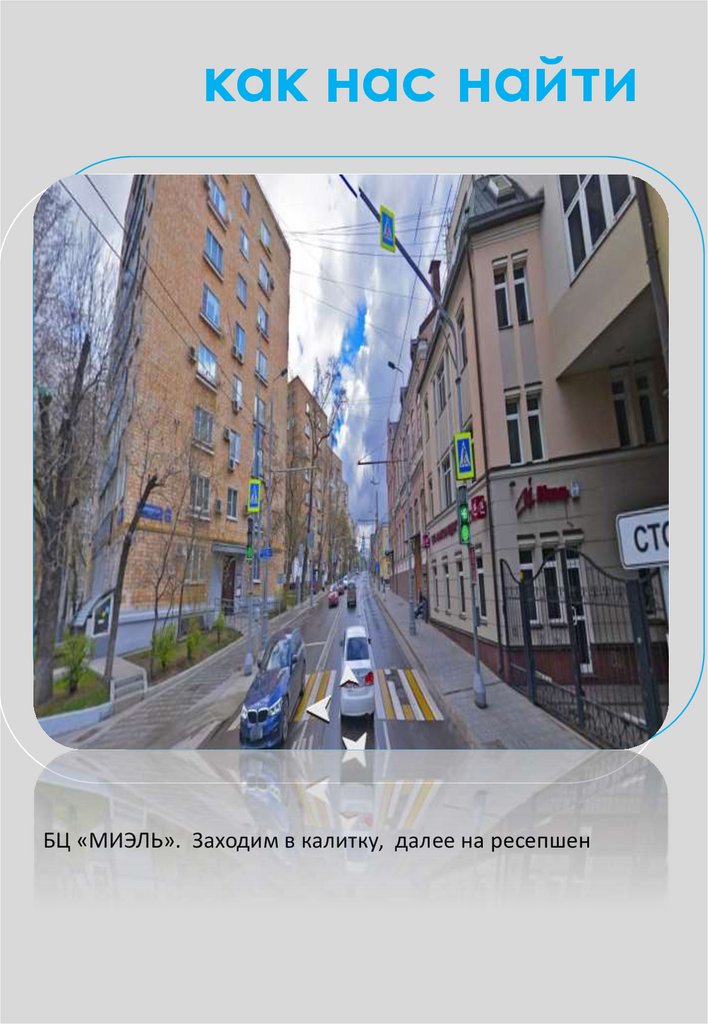 как нас найтиБЦ «МИЭЛЬ». Заходим в калитку, далее на ресепшен