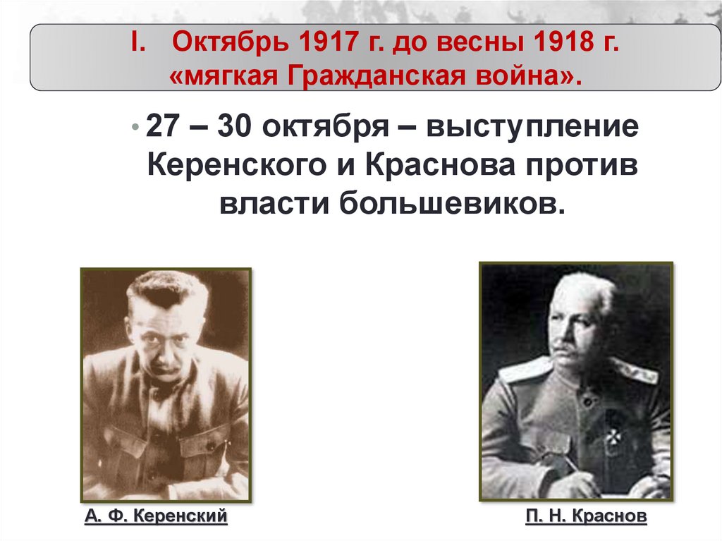 I. Октябрь 1917 г. до весны 1918 г.«мягкая Гражданская война».