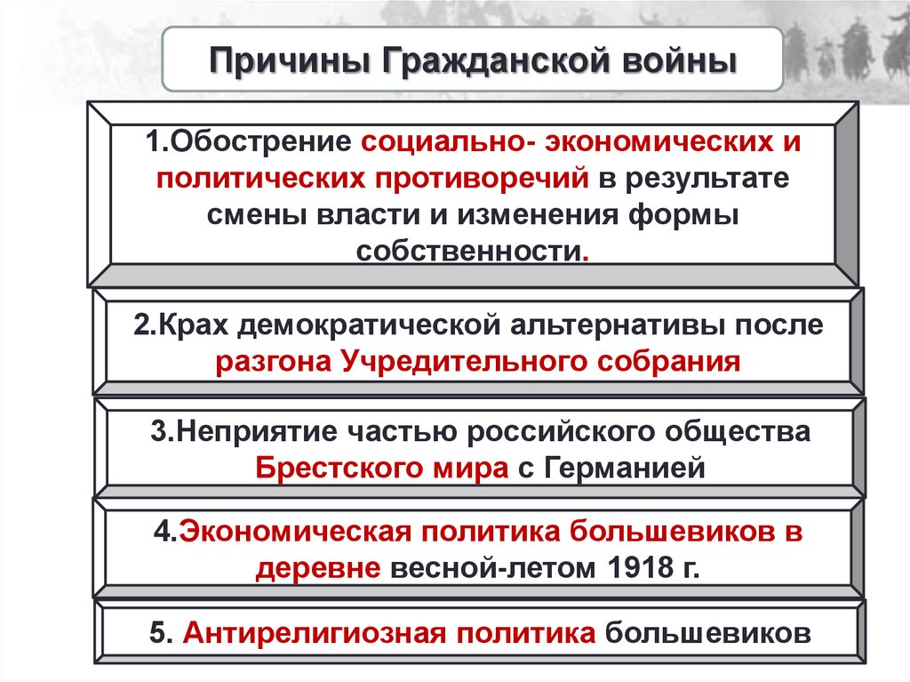 Причины Гражданской войны1.Обострение социально- экономических и