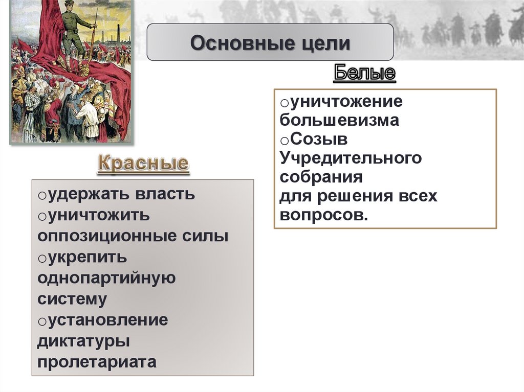 Создание армии белых.цвет символизировал