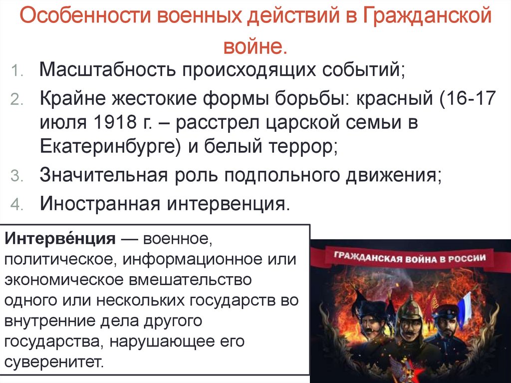 Особенности военных действий в Гражданскойвойне.