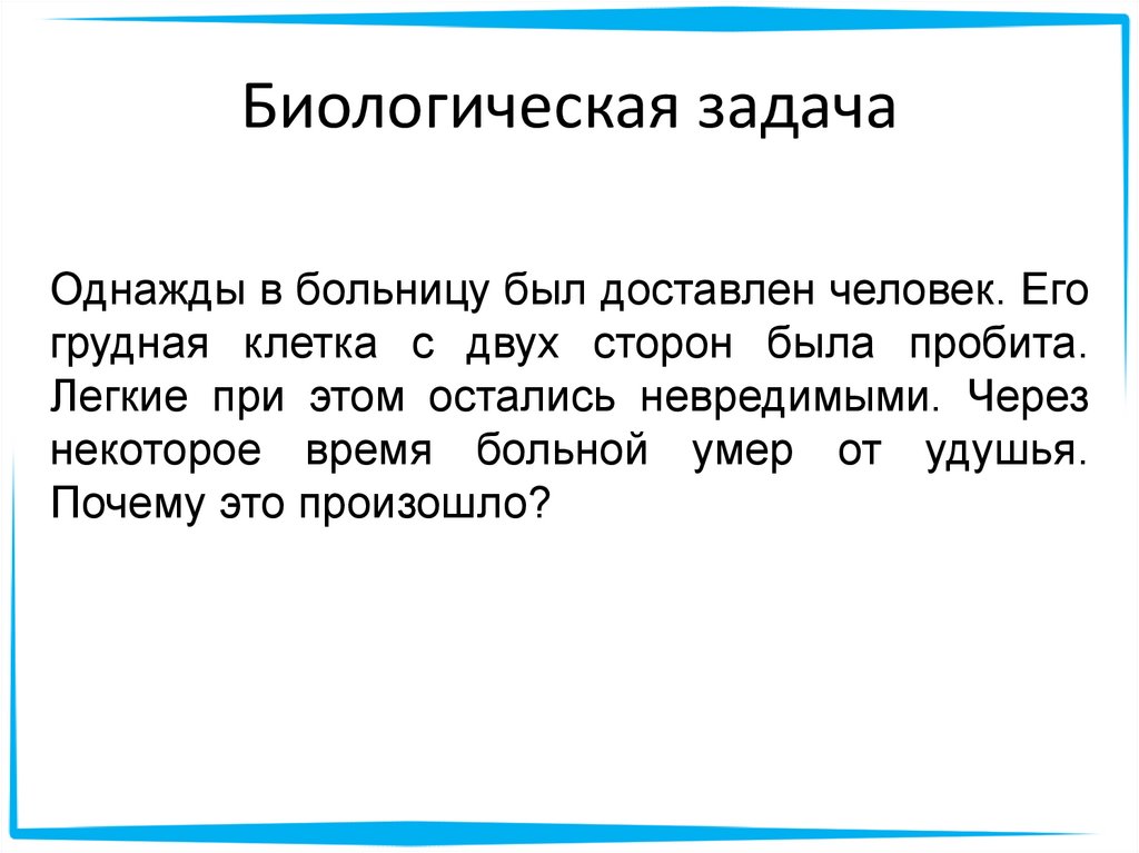 Биологическая задачаОднажды в больницу был доставлен человек. Его