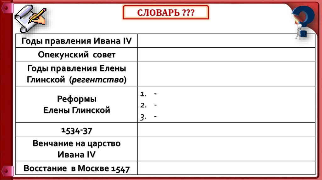 СЛОВАРЬ ???Годы правления Ивана IV