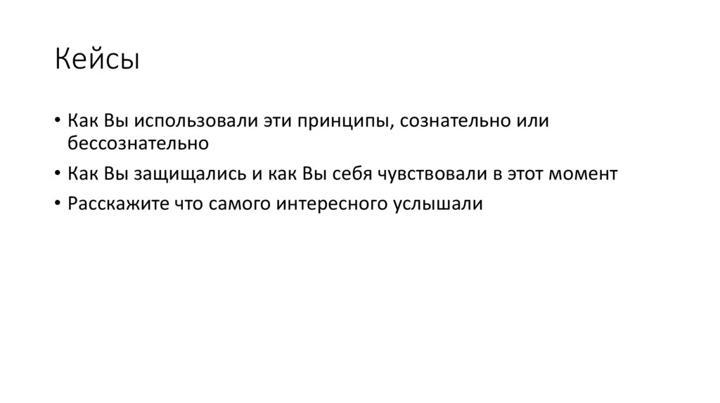Кейсы• Как Вы использовали эти принципы, сознательно или