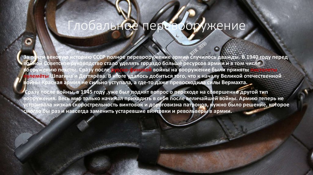 вооружению пехоты. Сразу после русско-финской войны на вооружение были приняты пистолеты