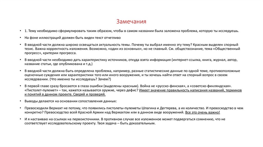 Замечания• 1. Тему необходимо сформулировать таким образом, чтобы в самом названии была заложена проблема, которую ты исследуешь.