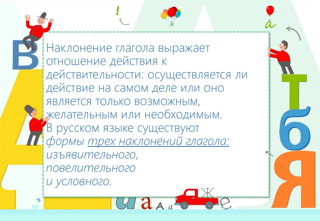 Наклонение глагола выражаетотношение действия к