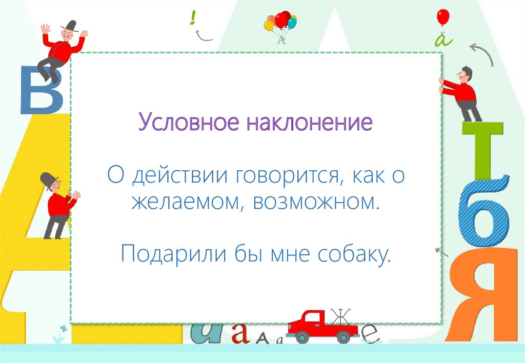 Условное наклонениеО действии говорится, как о