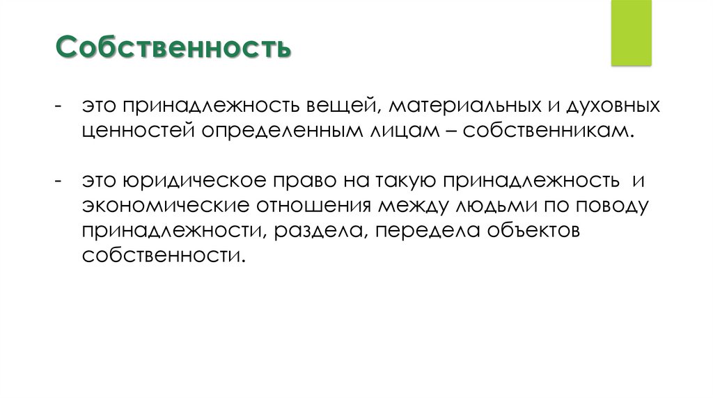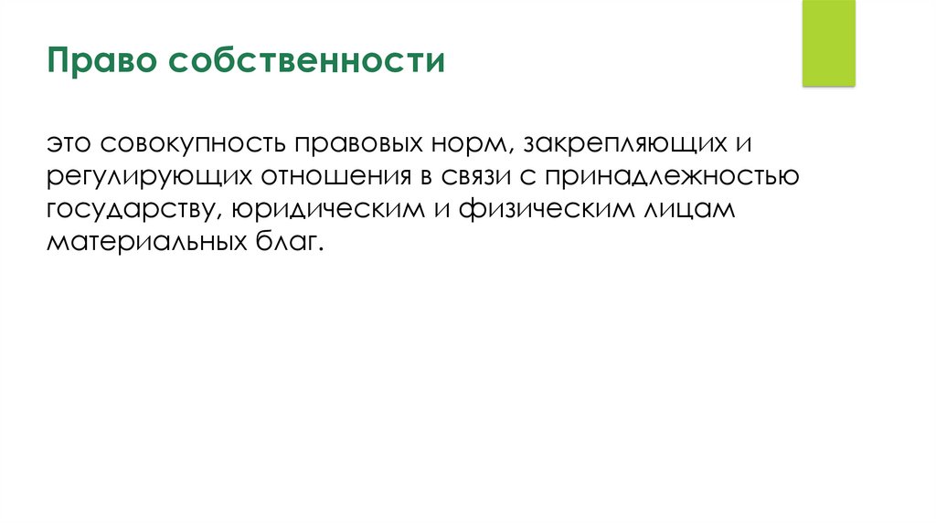 Право собственностиэто совокупность правовых норм, закрепляющих и