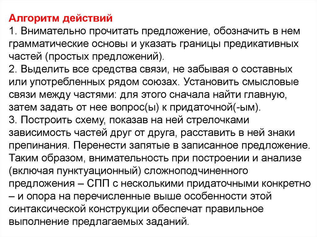 Алгоритм действий1. Внимательно прочитать предложение, обозначить в нем