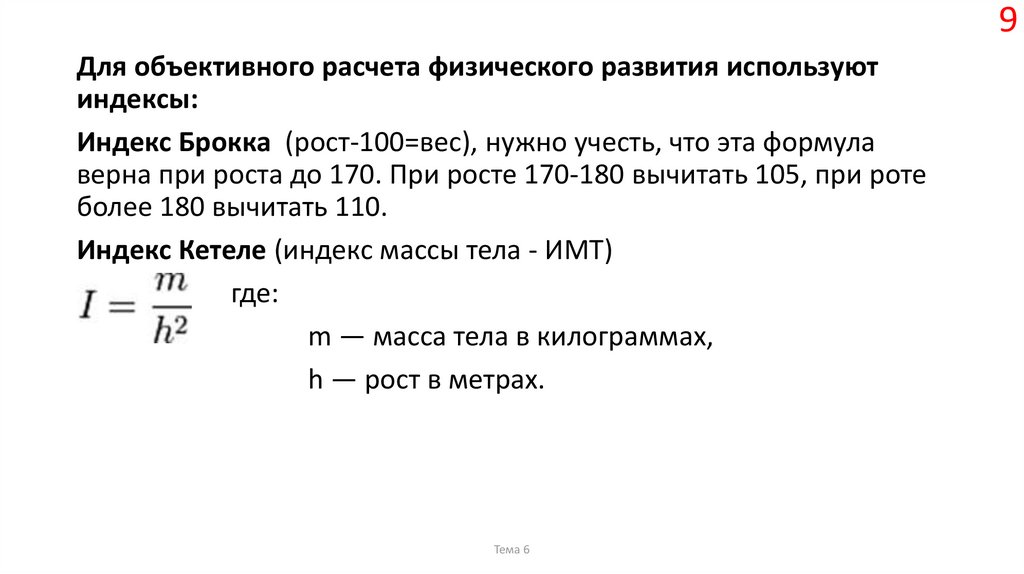 Индекс Брокка (рост-100=вес), нужно учесть, что эта формула