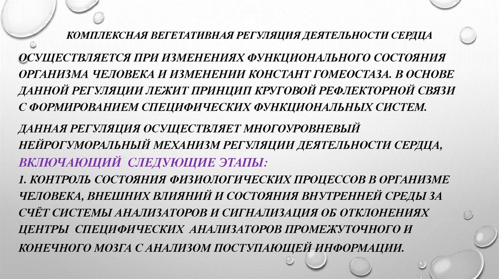 КОМПЛЕКСНАЯ ВЕГЕТАТИВНАЯ РЕГУЛЯЦИЯ ДЕЯТЕЛЬНОСТИ СЕРДЦАОСУЩЕСТВЛЯЕТСЯ ПРИ ИЗМЕНЕНИЯХ ФУНКЦИОНАЛЬНОГО СОСТОЯНИЯ