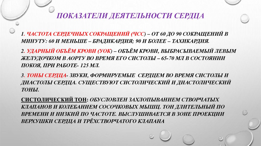 ПОКАЗАТЕЛИ ДЕЯТЕЛЬНОСТИ СЕРДЦА1. ЧАСТОТА СЕРДЕЧНЫХ СОКРАЩЕНИЙ (ЧСС) – ОТ 60 ДО 90 СОКРАЩЕНИЙ В