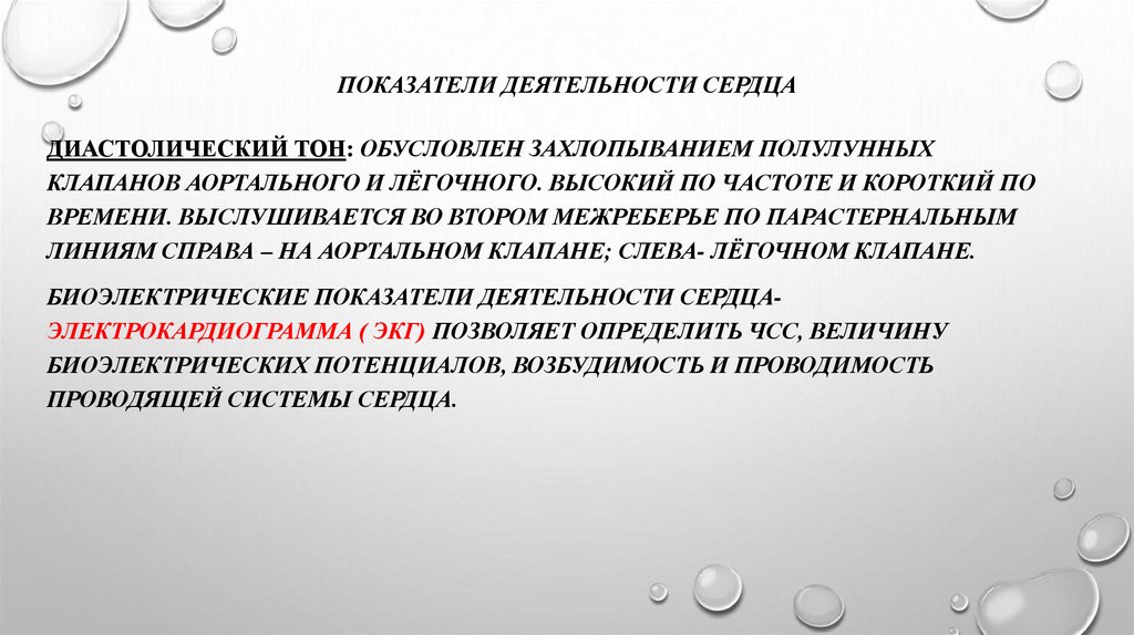 ПОКАЗАТЕЛИ ДЕЯТЕЛЬНОСТИ СЕРДЦАДИАСТОЛИЧЕСКИЙ ТОН: ОБУСЛОВЛЕН ЗАХЛОПЫВАНИЕМ ПОЛУЛУННЫХ